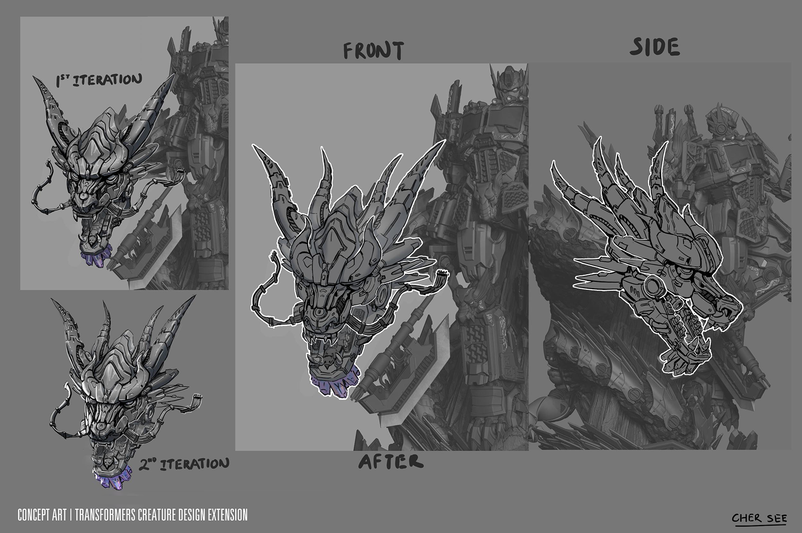 The challenge was to create intricate, visually striking dragon forms that remained true to both the Transformers aesthetic and traditional dragon motifs. Balancing complexity with recognisability, I ensured that each design captured the essence of a dragon while seamlessly integrating into the iconic Transformers universe.